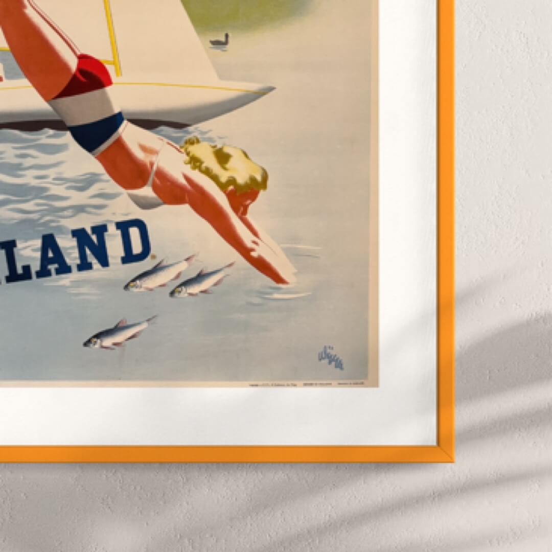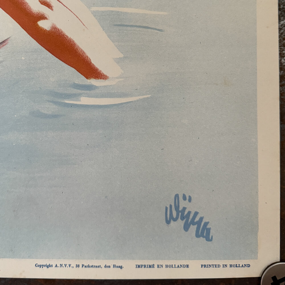 Lithograph from 1948 by the Dutch artist Jan Wijga. Original vintage travel poster which should try to entice tourists to take a summer holiday in the Netherlands.