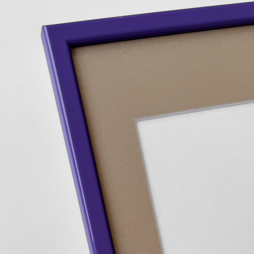 For this purple A3 frame, you can choose normal glass, acrylic glass/plexiglass, non-reflective glass or the beautiful museum glass, which is just as clear as normal glass, but also protects optimally against UV rays.