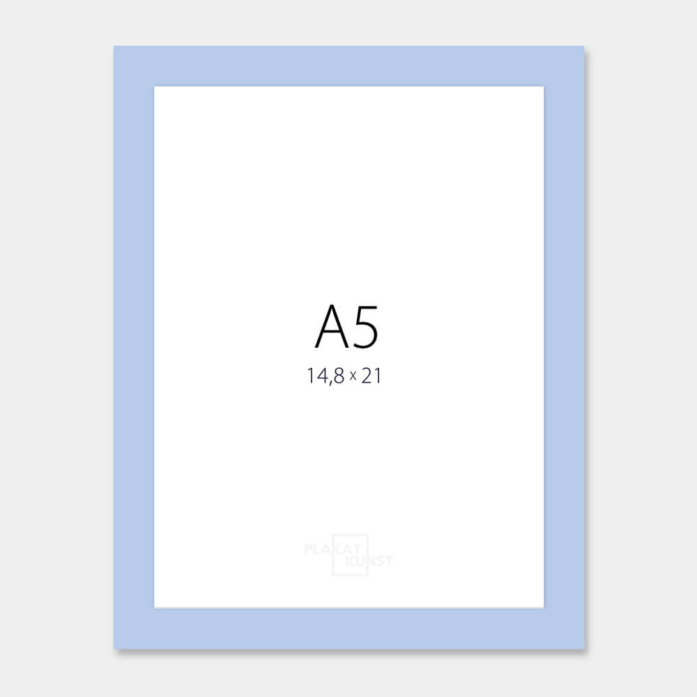 Light blue A5 picture frame with a beautiful matte varnish covering the structure of the wood on the 15 mm narrow and 13 mm deep wooden frame, with slightly rounded edges. Perfect for A5 photos (15x21 cm). The wooden frame extends 5 mm above the glass.