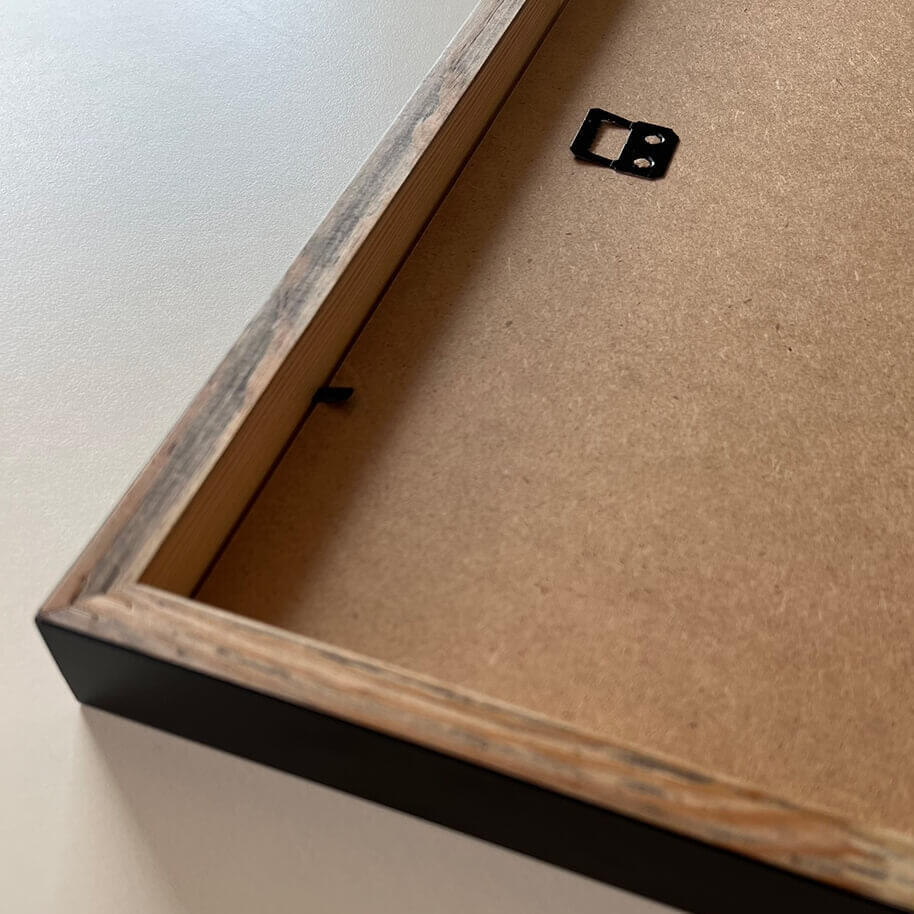 Matt black lacquer with a completely smooth surface, which hides the structure of the wood. We can also deliver black wooden frames with visible wood structure if you write in the live chat.